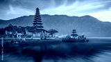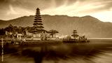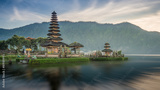 Pura Ulun Danu temple on a lake Beratan, Bali, Indonesia, long exposure HDR effect