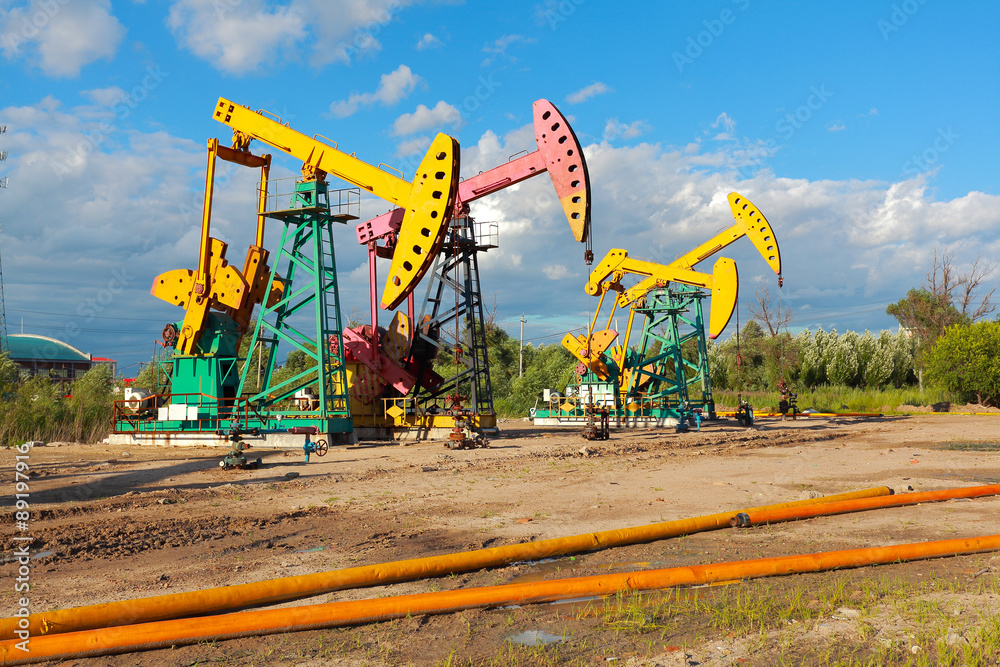Golden yellow and pink Oil pump of crude oilwell rig
