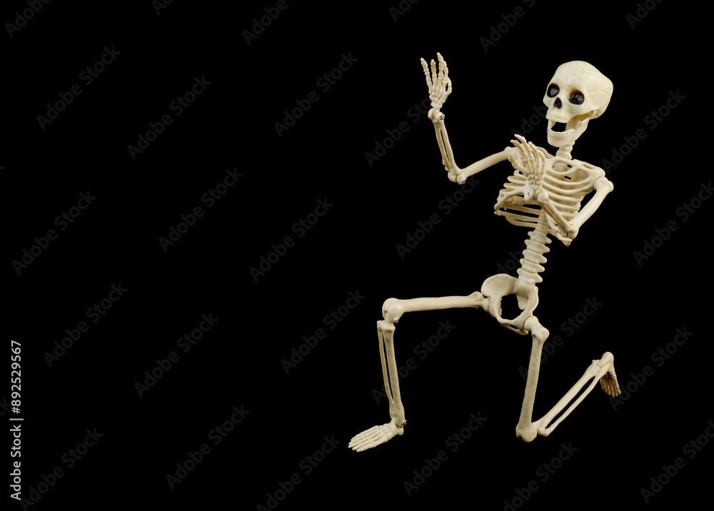Surprised death or skeleton isolated on black background. Copy space for text.