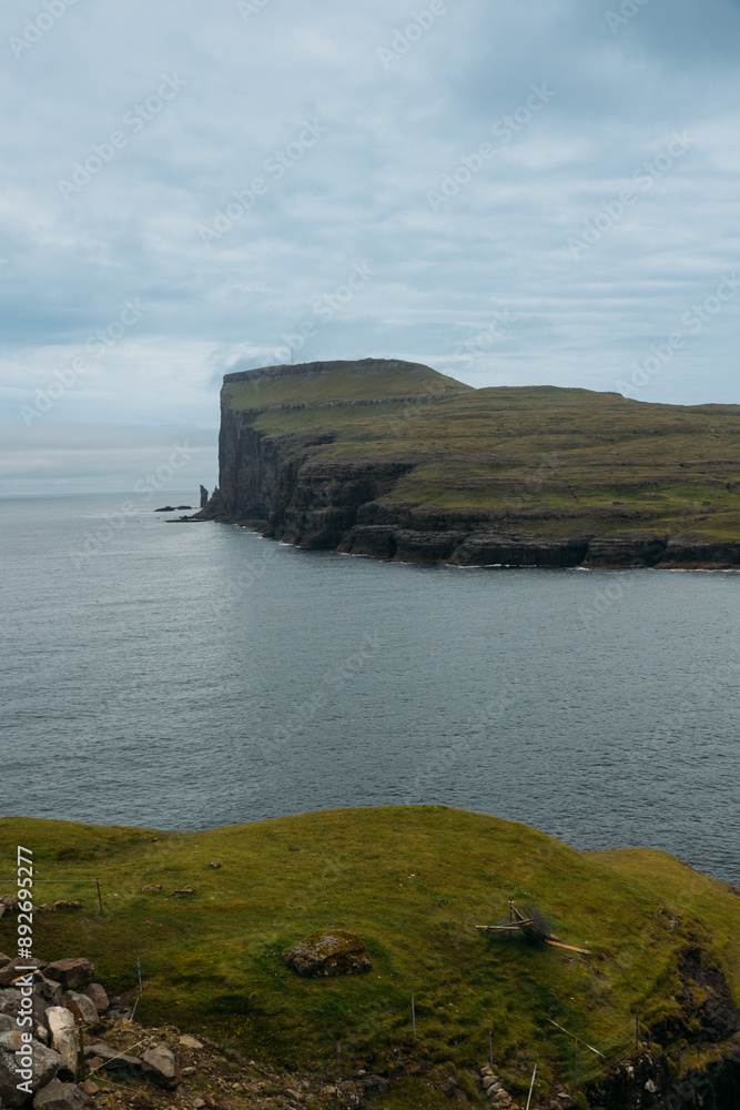 View from Saksun in Faroe island beautiful landscape in summer time with sun