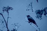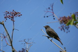 black redstart sitting on a branch in horgen zurich against a blue sky