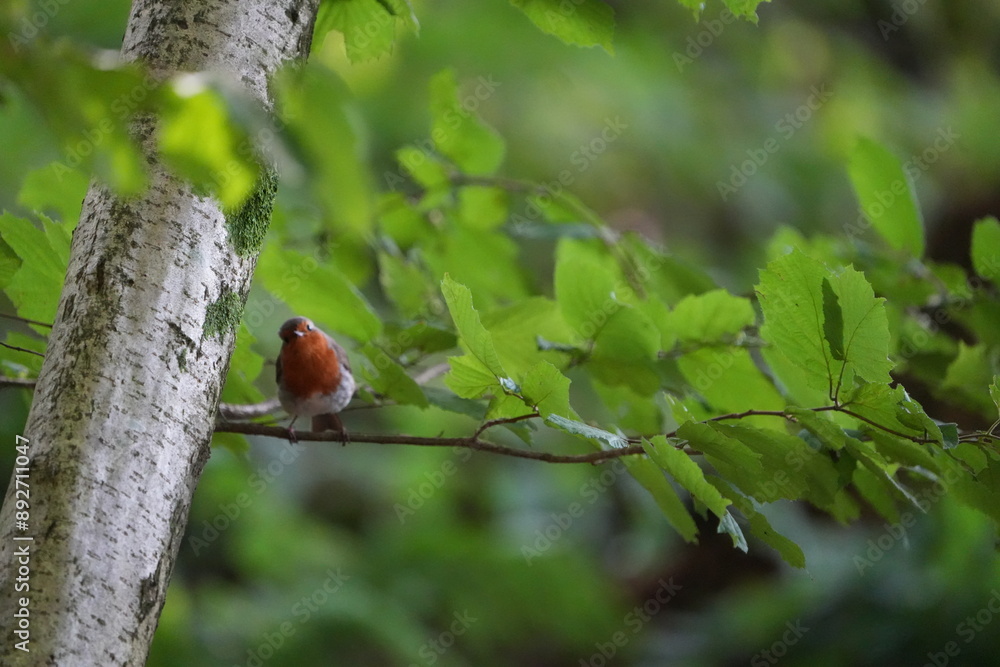 European Robin (Roodborstje) Perched on Tree Branch in Horgen, Switzerland