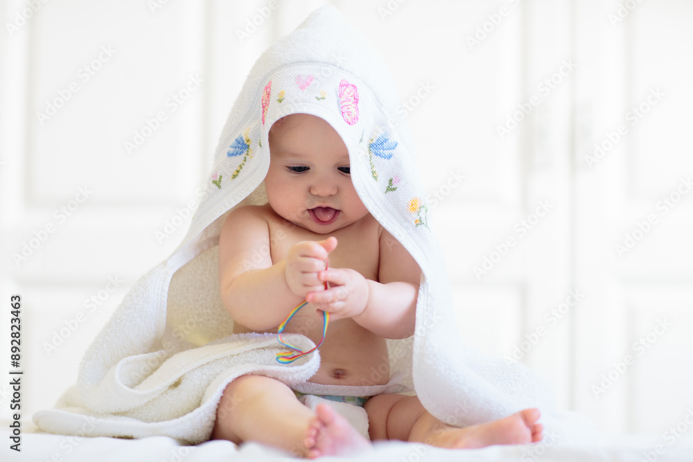 Little baby on white bed