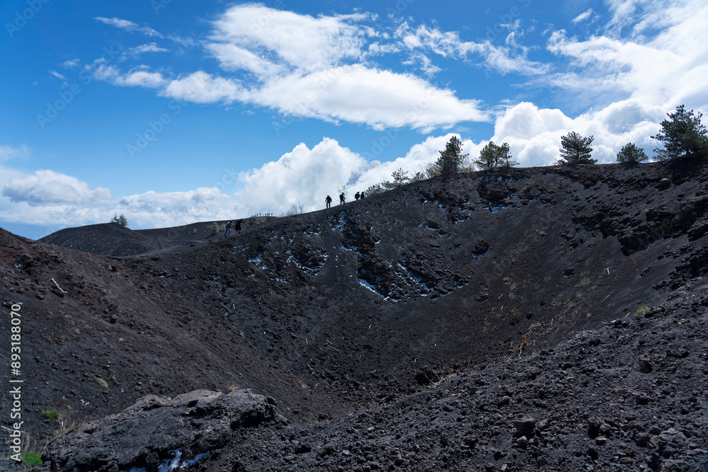 Volcano Etna crater mountain landscape with black lava, Sicily, Italy
