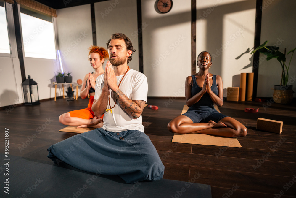 Three friends taking a selfie together after a yoga session, sitting on yoga mats in a cozy studio.
