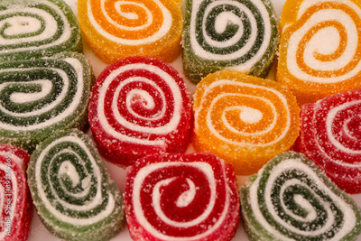 Jelly sweet candy roll isolated on a white background. Marmalade candy.