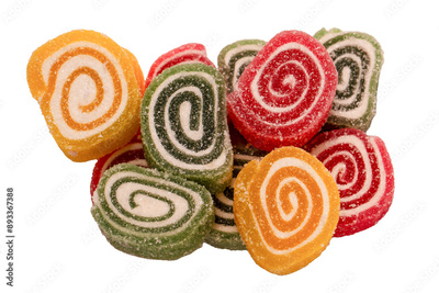Jelly sweet candy roll isolated on a white background. Marmalade candy.