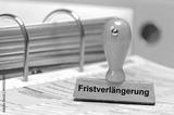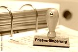 Holzstempel beschriftet mit dem Aufdruck: Fristverlängerung