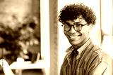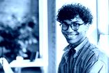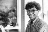 Close-up portrait of a mixed-race afro-american young man guy freelancer student manager it worker designer working studding in the modern office loft coworking cafe. College education concept