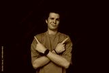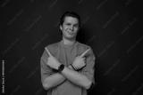 Man Standing With Arms Crossed in Front of Green Background