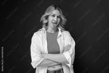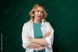 Woman With Arms Crossed Standing in Front of Green Background
