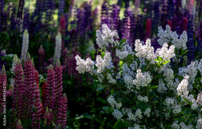 White lilac on the lawn on a summer day.