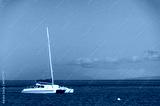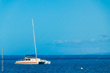 Catamaran moored in the Pacific Ocean off the island of Maui Haw