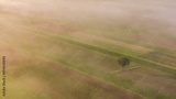 Breathtaking Foggy Sunrise Above Colorful Farmland and Countryside