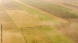 Vivid Farmland and Scenic Countryside Captured at Foggy Sunrise