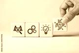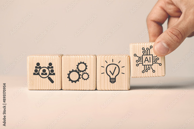 Assembled wooden cubes on the topic of the application of artificial intelligence in business