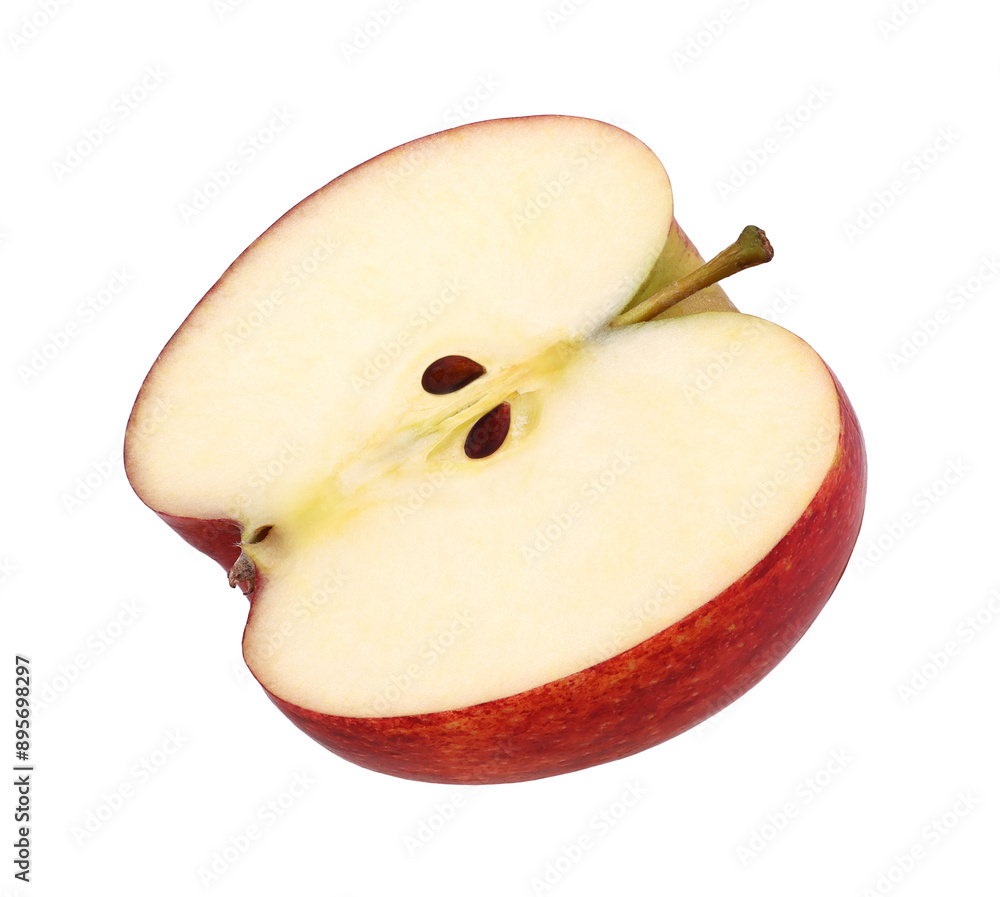 half red apple isolated, fresh red apple, transparent PNG, PNG format, cut out