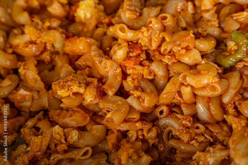 Best Thai food menu Stir Fried Macaroni with Sausage and Egg