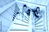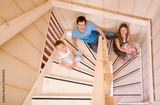 Happy young family of four at their home
