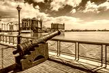 Old cannon on the promenade at Caudan Waterfront, Port Louis, Ma