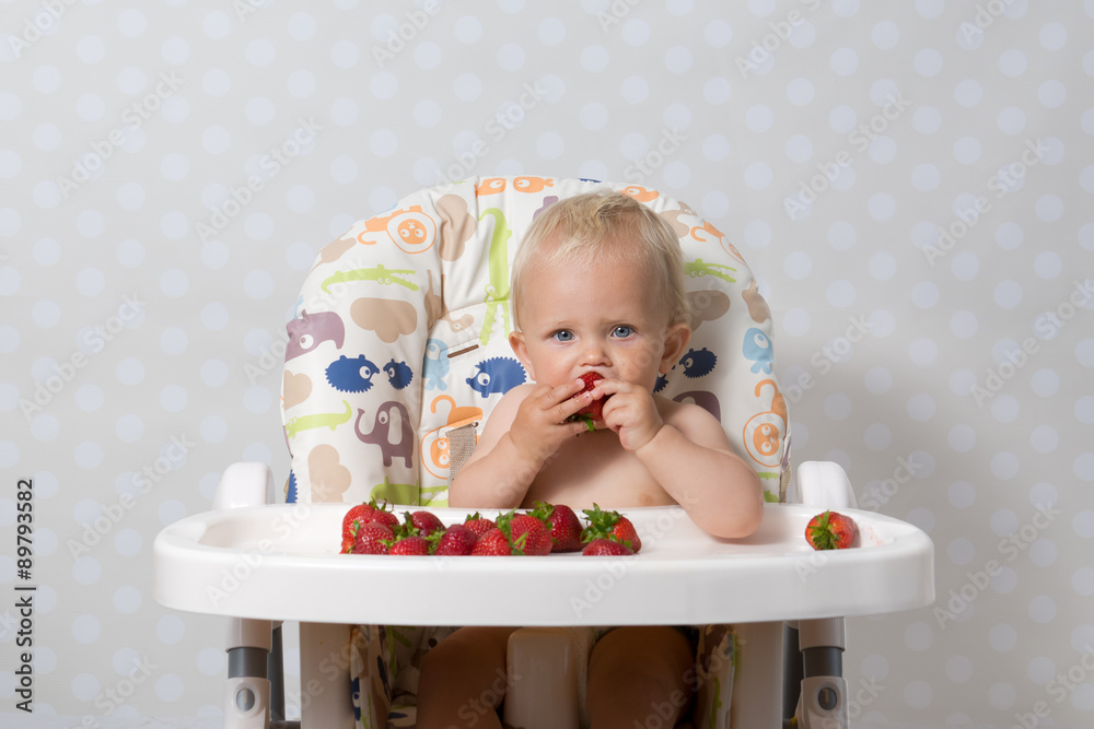 Baby girl eating strawberries