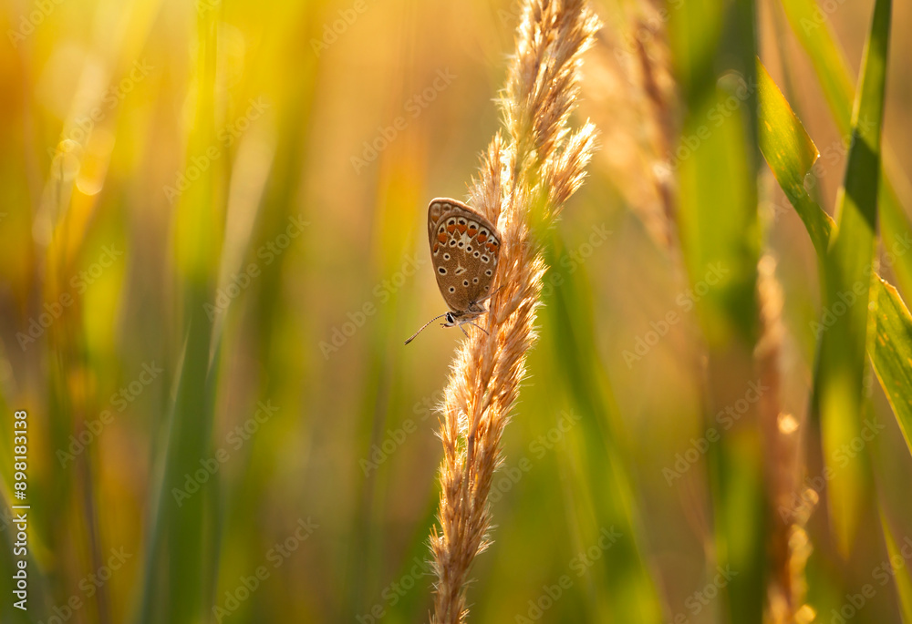 Motyl Modraszek Ikar, zbliżenie, tapeta, dekoracja.