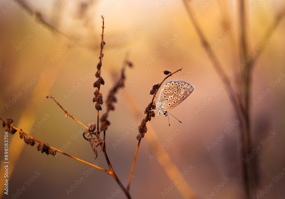 Motyl Modraszek Ikar, zbliżenie, tapeta, dekoracja.