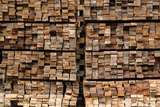Pile of stacked rough cut lumber