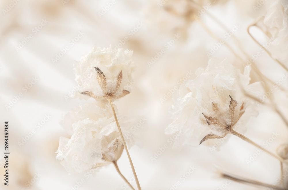 Beige blooming gypsophila flowers with natural blur background fragile romantic beauty macro
