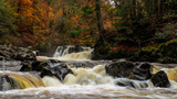 Autumn forest river waterfall. Waterfall in autumn forest. waterfall in autumn