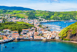 View of Horta town with port in beautiful bay, Faial island, Azores, Portugal