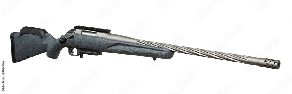 Modern bolt carbine isolated on white background. Weapons for sports, hunting and self-defense.
