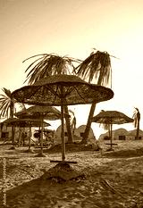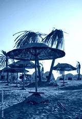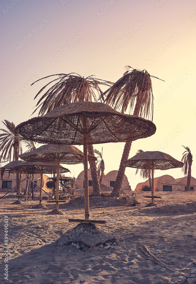 Abandoned beach resort at sunset, color toning applied, Egypt.