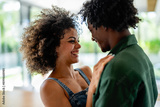 Close up photo of a young cheerful couple of African descent having an intimate moment of love and affection