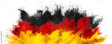 colorful german flag black red gold yellow color holi paint powder explosion isolated white background. germany europe celebration soccer travel tourism concept..