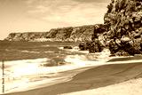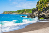 Idyllic beach and waves on ocean coast in Moinhos village, Sao Miguel island, Azores, Portugal