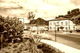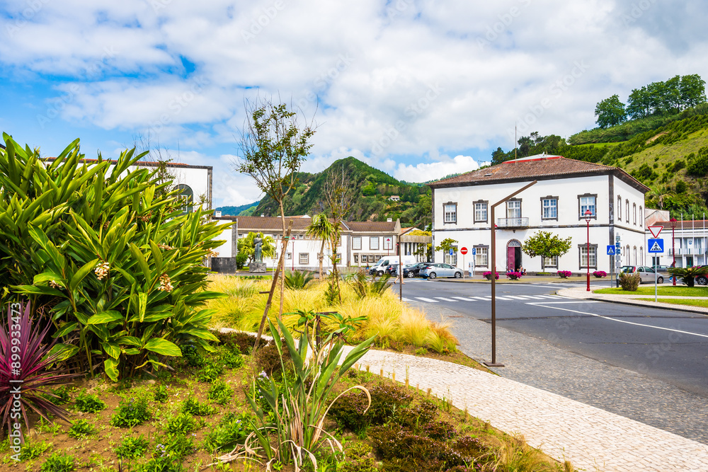 POVOACAO, SAN MIGUEL ISLAND - JUN 21, 2024: Center of Povoacao town with traditional colonial style architecture, Sao Miguel island, Azores, Portugal.
