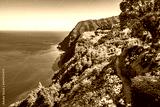 Coastal path along ocean in Ponta do Sossego tropical gardens, Sao Miguel island, Azores, Portugal