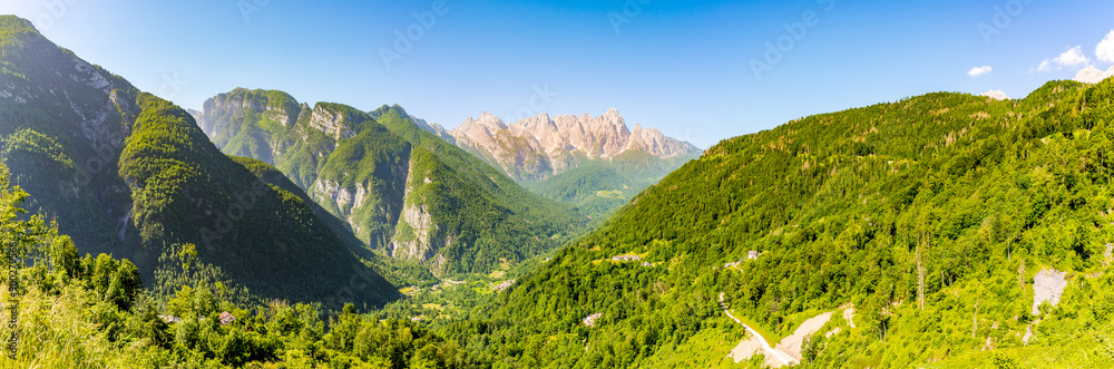 Panoramic view at the mountains from Cereda pass in Dolomites - Italy