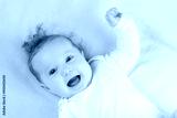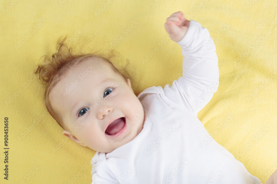 Little baby girl on colorful blanket
