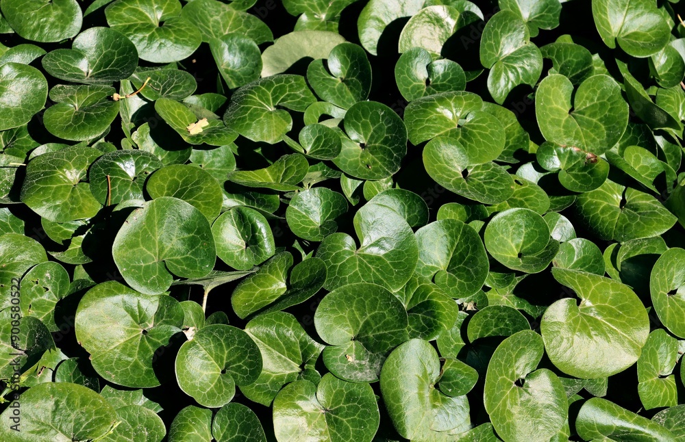 green leaves of Asarum europaeum plant as background