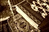 oriental asian Uzbek carpets at the bazaar in Uzbekistan in Samarkand