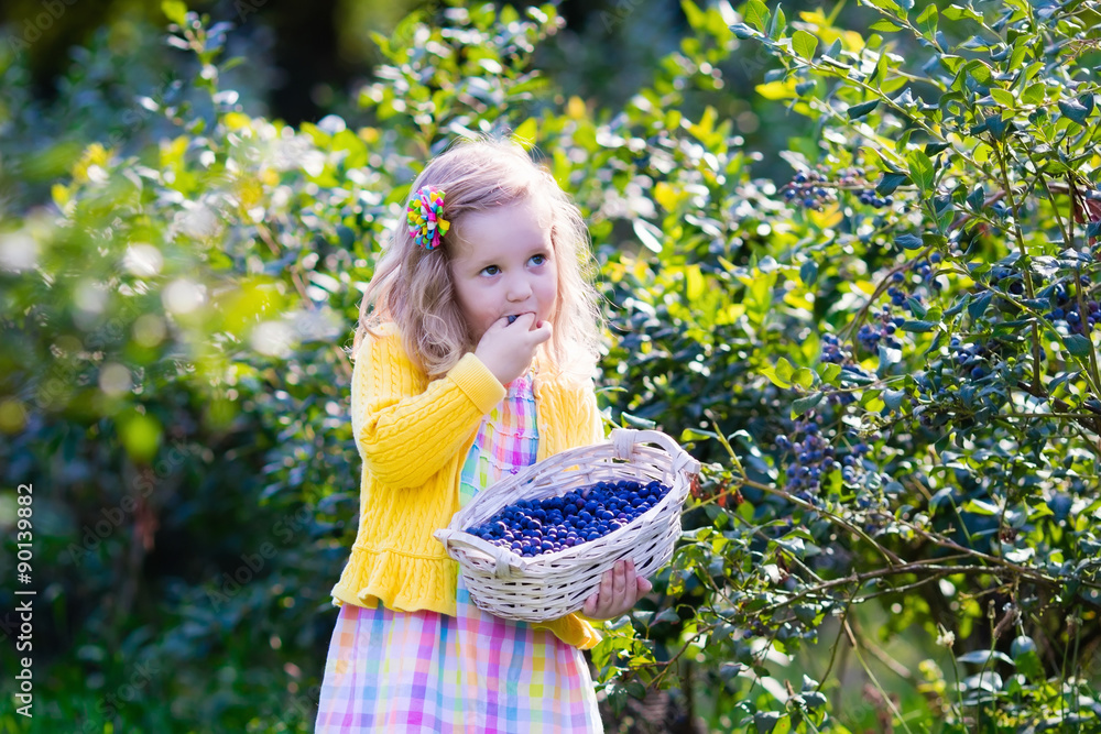Little girl picking blueberry