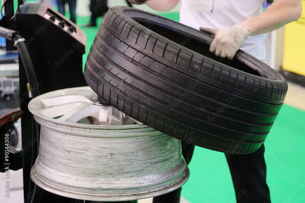 modern tire machine in the service station