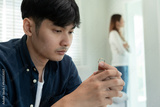 Divorce. Man remove married ring. Couples desperate and disappointed after marriage. Husband wife sad, upset and frustrated after quarrels conflict. distrust, love problems, betrayals, family, lover