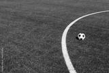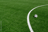 Black and white soccer and football ball in the field. Horizontal sport theme poster, greeting cards, headers, website and app