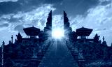 Pura Besakih temple on the slopes of Mount Agung largest and holiest temple at sunset - Bali, Indonesia