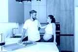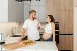 Pregnant Couple Enjoying Pizza in Kitchen. Family time.