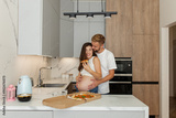 Pregnant Couple Sharing Pizza in Cozy Kitchen