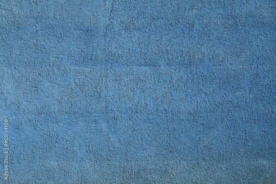 Very worn blue wall, texture, background. Decor of pale bright-blue textured coating. Structural plaster, rough, uneven surface in blue color. Old exterior cladding of buildings. Blue shabby backdrop